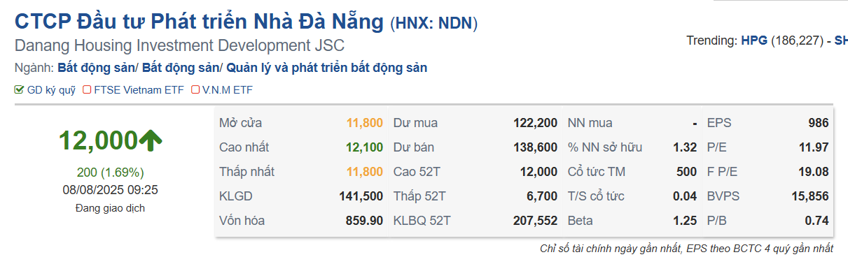 Quý II/2025, Nhà Đà Nẵng (NDN) báo lãi tăng 304% chủ yếu nhờ hoàn nhập dự phòng đầu tư chứng khoán