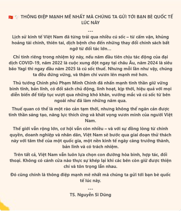 Ông Trump đưa danh sách áp thuế là ép các nước phải tiến hành đàm phán với Mỹ. Quá trình đàm phán sắp tới mới là quan trọng và có ý nghĩa quyết định. Về cơ bản, Mỹ sẽ ép các nước, nếu muốn được giảm thuế thì phải chấp nhận một số thoả thuận có lợi cho Mỹ. Hiện chưa biết ông Trump muốn gì ở Việt Nam. Hãy chờ đến 5-6/4 xem thế nào đã