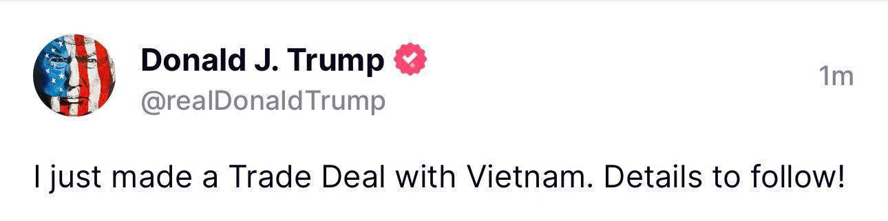 Trump tuyên bố mới có deal với Việt Nam, chờ tin!!!