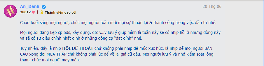 Mình đã nói cho mọi người từ thứ hai rồi nhé, nhịp này HỒI ĐỂ THOÁT nha. Kiểm soát lòng tham, đừng kì vọng quá nhiều.