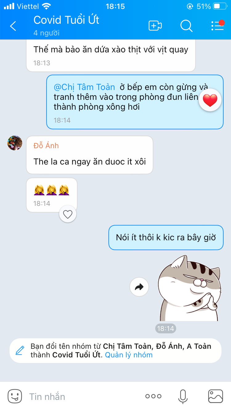 Cô cô dương tính à, giữ gìn sức khoẻ nha cô cô. Chịu khó xông xả chanh các kiểu, ăn uống và nghỉ ngơi nhiều cô cô nè. Chúc cô cô mau khoẻ để còn cướp tàu thật nhiều với bọn con