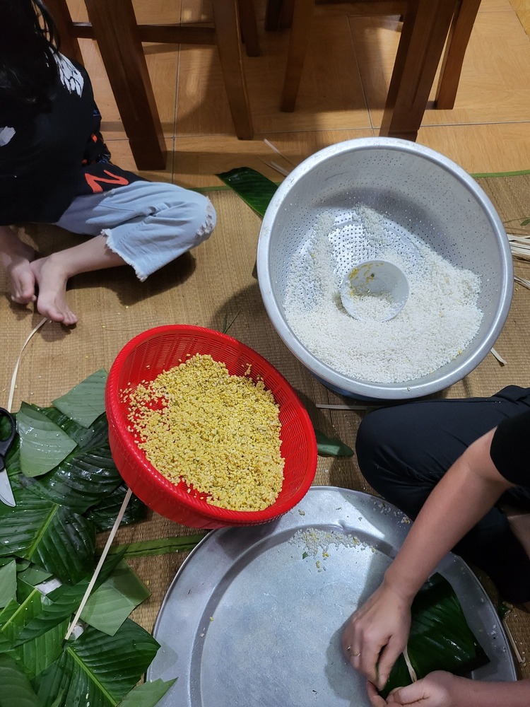 Bà con gói bánh chưng chưa ạ…
