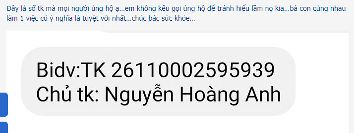 Cho e xin tài khoản NH với bác, e có chút tấm lòng ủng hộ các bé