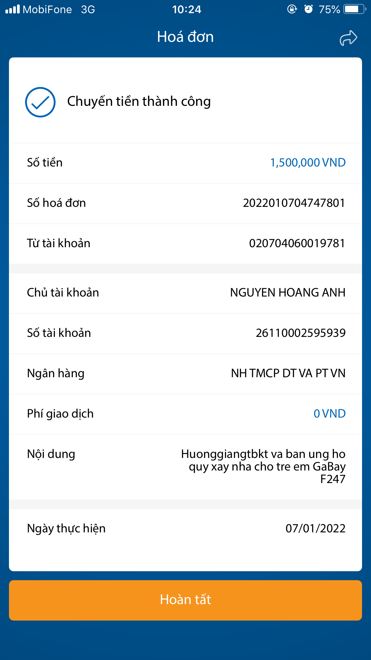 Em và bạn tầu ngầm theo bác Khoai có lãi HAR và ROS. Chúng em xin góp viên gạch ủng hộ quỹ xây nhà cho các bé. Cảm ơn Bác Khoai nhiều ạ! Hoan hỉ với tấm lòng của Bác.