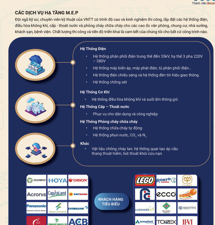 Mảng lớn thứ 3 là dịch vụ M-E-P, hiểu đơn giản là TTN phụ trách toàn bộ công tác thi công điện & hạ tầng mạng cho các doanh nghiệp trong các KCN. Mảng này có tốc độ tăng trưởng OK, nhưng ngon nhất ở giai đoạn đầu tiên khi các KCN bắt đầu vận hành nhận khách thuê mới. Mảng này cũng chiếm tầm 20% doanh thu.