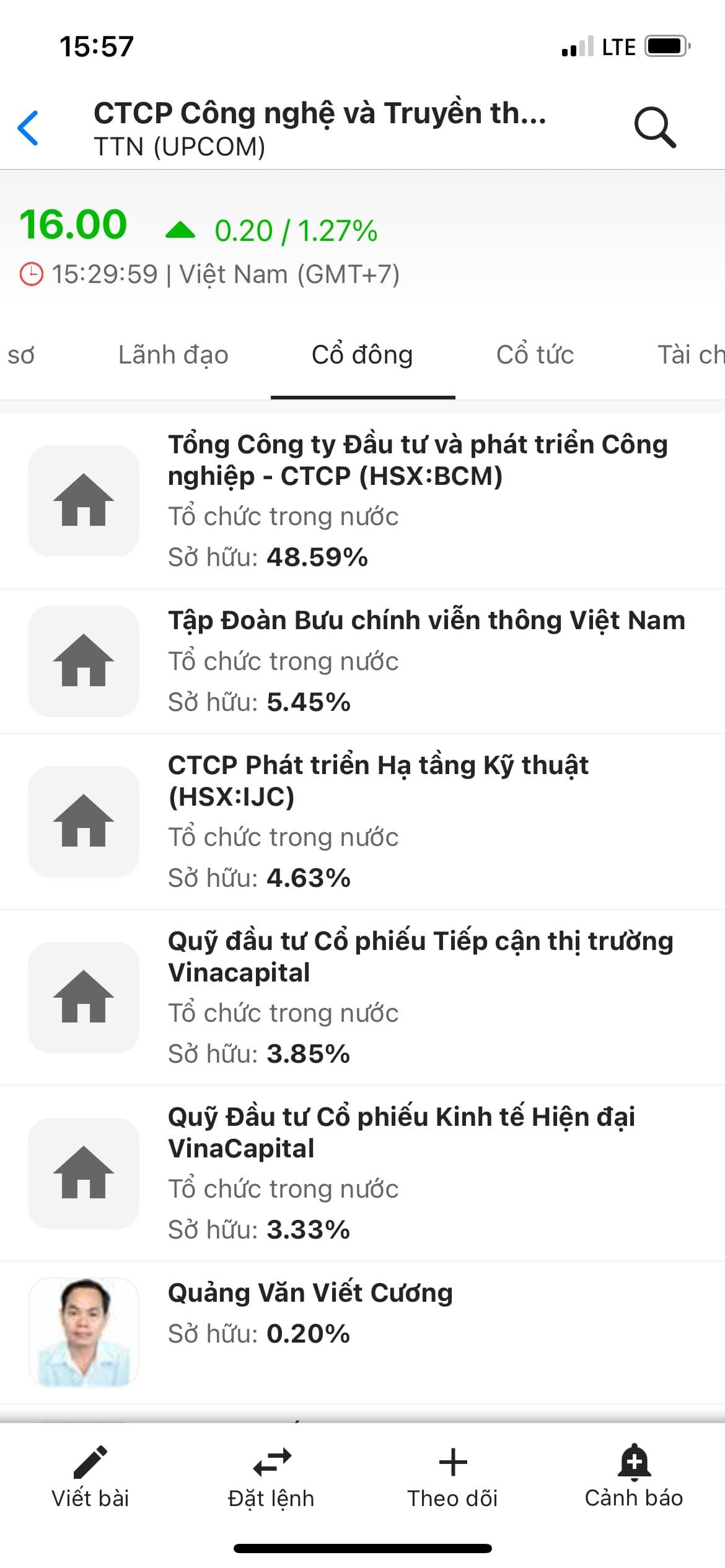 Cổ đông lớn đã khoá két 70%. Toàn các ông kẹ trên thị trường vn, hiếm có dn nào có cổ đông tổ chức chất lượng như TTN.