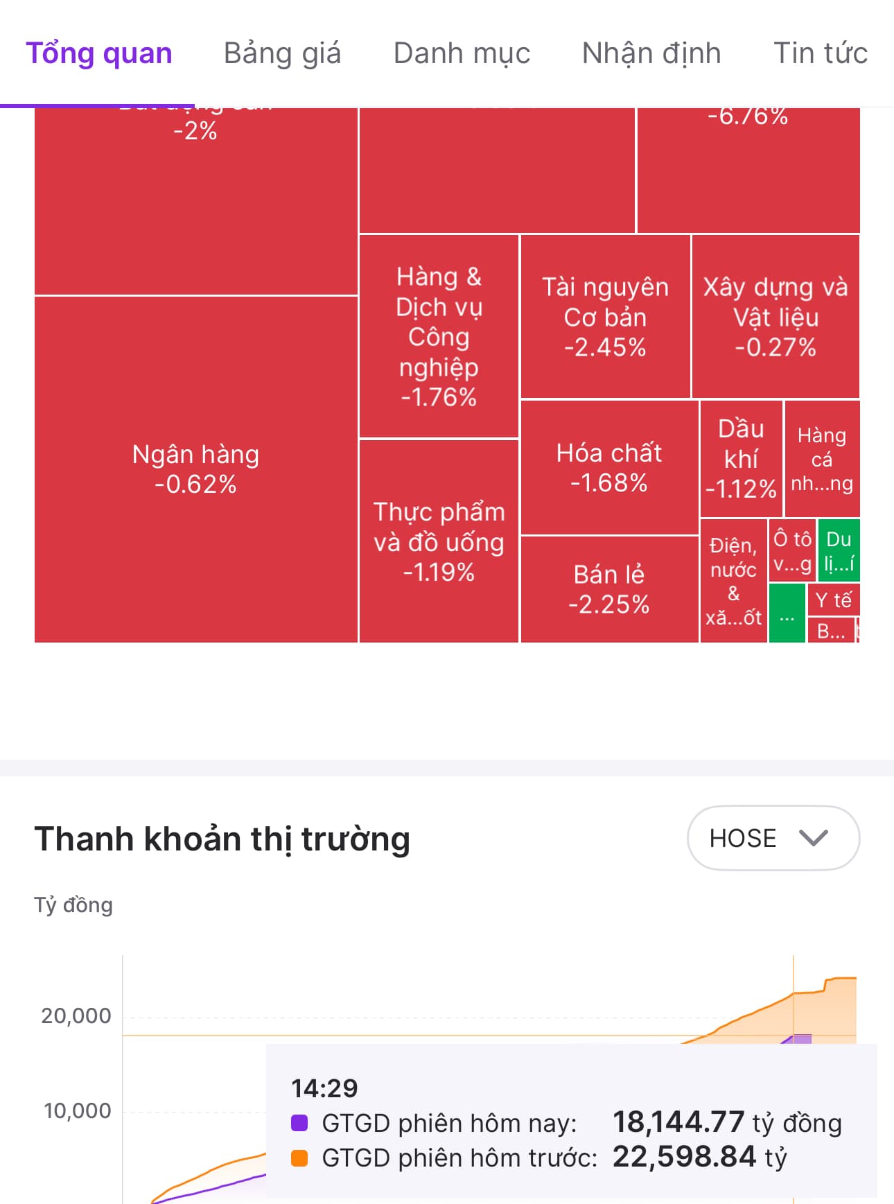 Thanh khoản ko phải là quá ít, chỉ là ít hơn so mọi ngày, đoạn này ko sợ call mg mà chủ yếu nđt chủ động bán trước một số tin tức ko thuận lợi.