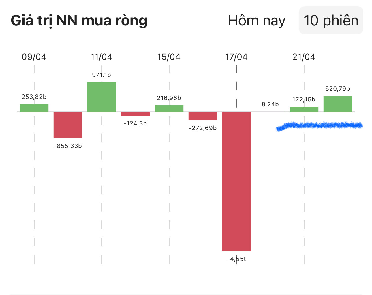 Tiền mới đây, nếu nn trở lại mua ròng thì an toàn hơn vì tiền này ko mg. Trong trạng thái hiện tại đa số ndt phòng thủ thì tt khó mà sập bởi ko sử dụng hoặc sử dụng ít mg, trừ những nđt kẹp hàng. Thanh khoản 34k tỉ phiên nay, cũng là con số kỉ lục