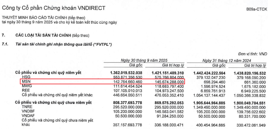 Quý 3 vừa rồi, khối tự doanh mua ròng gần 620 tỷ đồng (~7,9 triệu cp MSN) – riêng giai đoạn giá 83–85k còn ôm thêm hơn 370 tỷ, đầu tháng 10 lại tiếp tục gom thêm 140 tỷ.