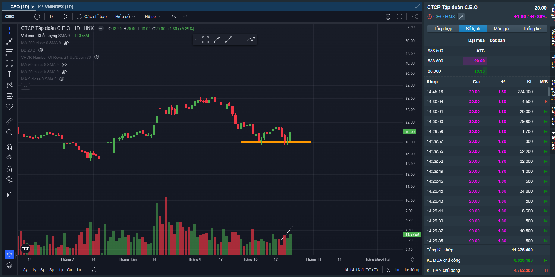 nhịp này CEo mạnh . Cân bằng 2 đáy. Cân bằng sớm từ hôm t5 và vol tăng dần nhẹ. Tôi thích cổ cân bằng sớm chứ k thích con kéo ngược như DIG