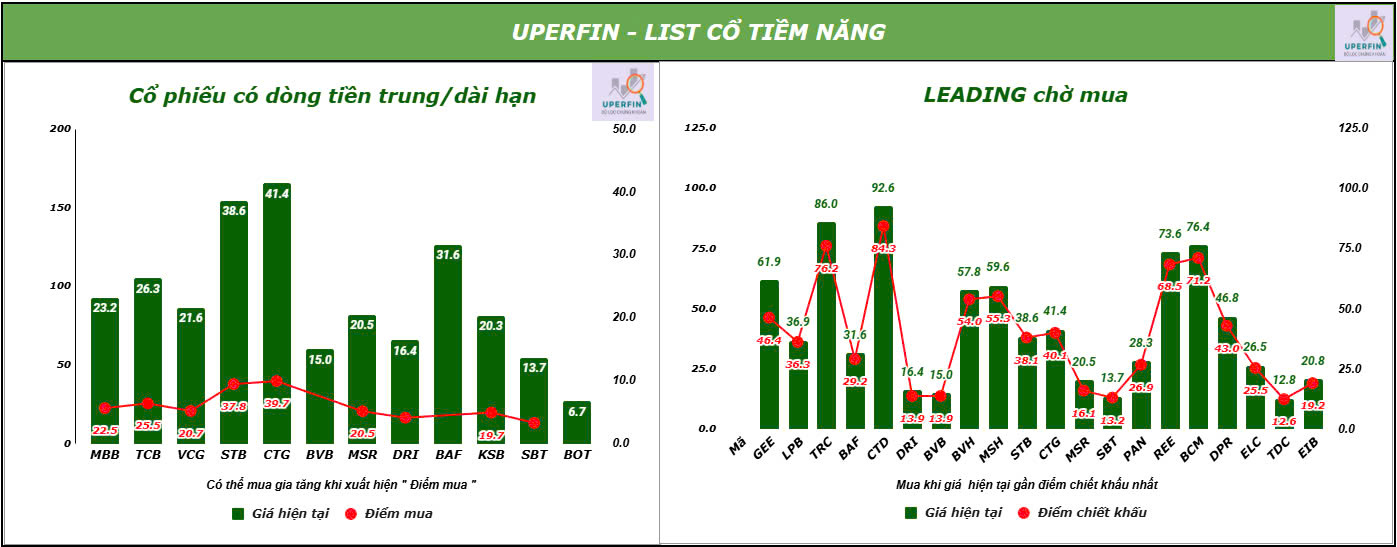 • Canh Mua Đám LEADING & Cổ Có Dòng Tiền Trung Hạn: