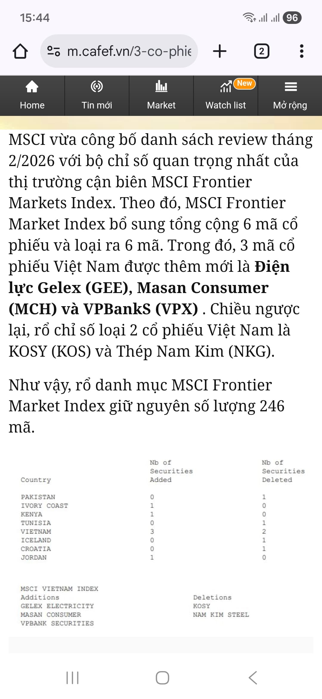 GEE lọt rổ MSCI.