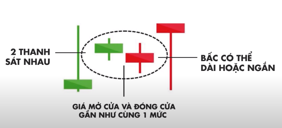 Gồm 2 nến. Nến 1 đỏ thân dài, Nến 2 xanh thân ngắn, bóng nến ngắn, nến xanh hoặc đỏ.