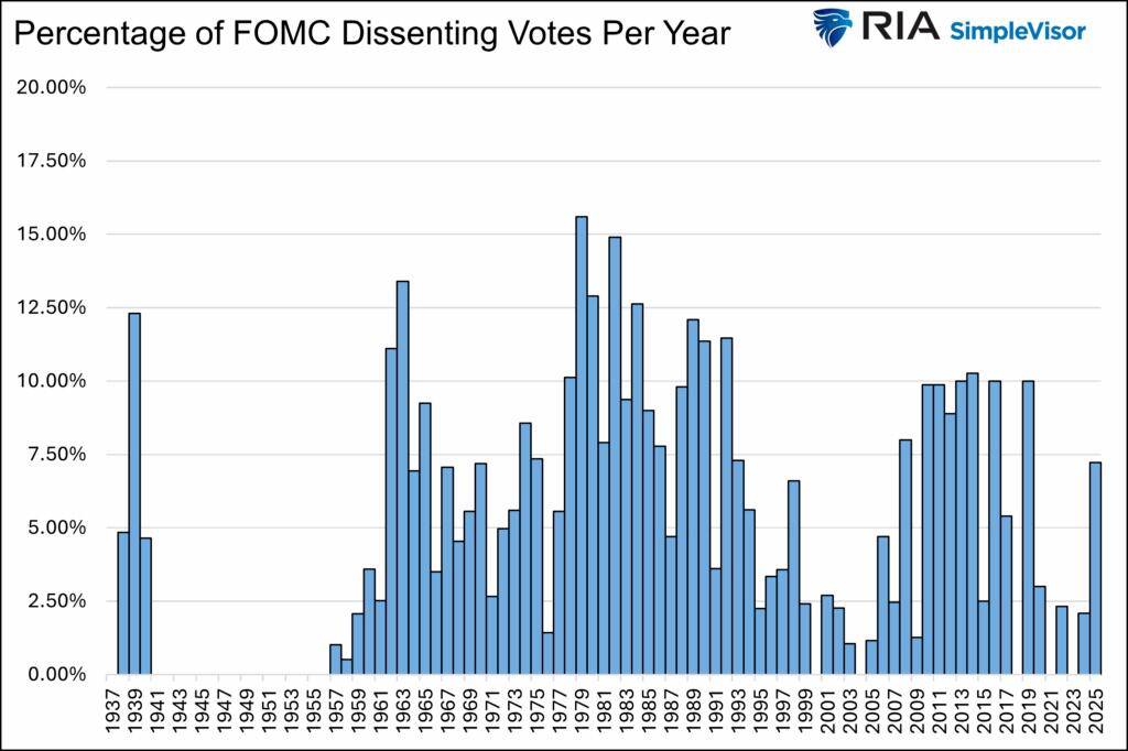 Cục Dự trữ Liên bang (Fed) có thể đang tiến gần đến một điểm uốn có thể thay đổi căn bản cách thị trường diễn giải chính sách tiền tệ. Trong gần một thế kỷ, Ủy ban Thị trường Mở Liên bang (FOMC) đã thể hiện một lập trường thống nhất trước công chúng, với tỷ lệ phiếu phản đối trung bình chỉ 5% thành viên kể từ năm 1936.