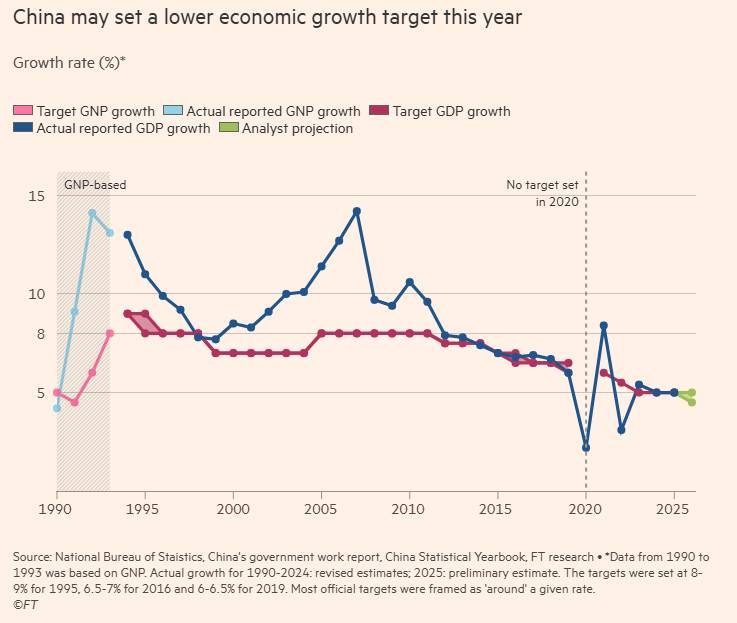 Nếu Bắc Kinh lựa chọn 4,5% làm ngưỡng dưới, đây sẽ là mục tiêu GDP hằng năm thận trọng nhất kể từ khi công cuộc cải cách và mở cửa khởi động vào thập niên 1980. Ý nghĩa của quyết định này không chỉ mang tính biểu tượng. Trên thực tế, các mục tiêu tăng trưởng đóng vai trò kim chỉ nam cho triển khai chính sách, quyết định quy mô chi tiêu tài khóa và tín dụng của hệ thống ngân hàng quốc doanh nhằm hiện thực hóa các ưu tiên của chính phủ.