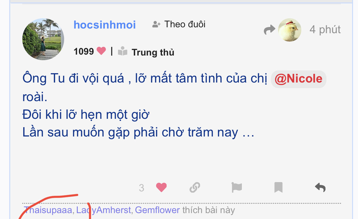 Ông Tu đi vội quá , lỡ mất tâm tình của chị @Nicole roài.
