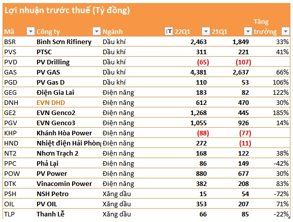 Nhóm điện, dầu khí - xăng dầu