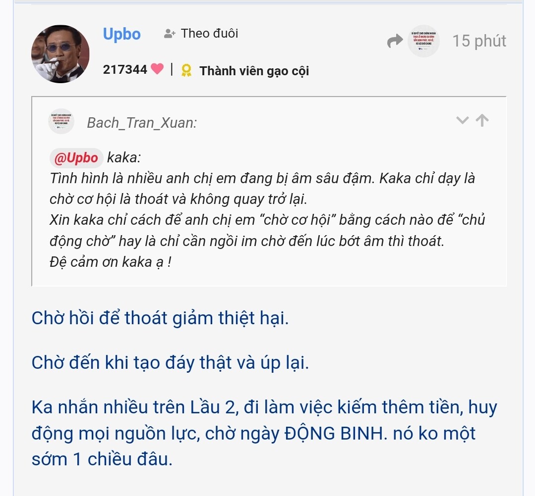 Mong ka luôn khỏe và bình an để chỉ dẫn chúng đệ tồn tại ở thị trường chứng cháo!