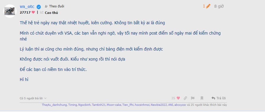 Ngu lắm thằng ngu ah. Học, học nữa vs học mãi. Học vs chắt lọc cái tinh túy của từng người để trở thành cái học thuật của mày có phải tốt ko nhỉ. Học a7 để vững tâm lý nắm giữ cp trong sóng gió, học kỹ thuật chọn điểm vào theo p.a của bô huynh để tối ưu cái lợi nhuận thu dc. Mày xem học cả 2 có phải hơn học 1 ng ko.