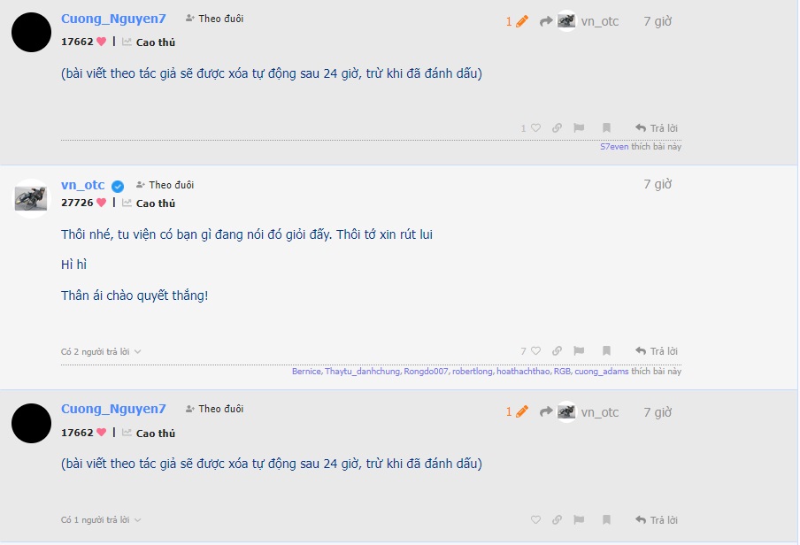 @Uppo Bô ka vĩnh biệt ai thì vĩnh, đừng bỏ anh em thảo khấu là được. Đệ chỉ nói một câu ngắn gọn thế này, đệ tin Bô ka vì đệ tin chính mình, thế thôi.
