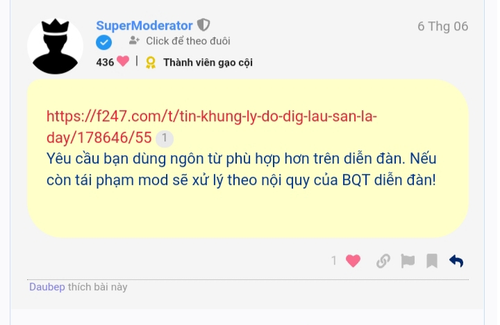 Bữa e cũng dùng mấy từ này, thì bị xóa cmt + nhắc nhở. Sao nick đó được thoải mái gây war + công kích thế ạ? Có đặc quyền gì ko ạ?