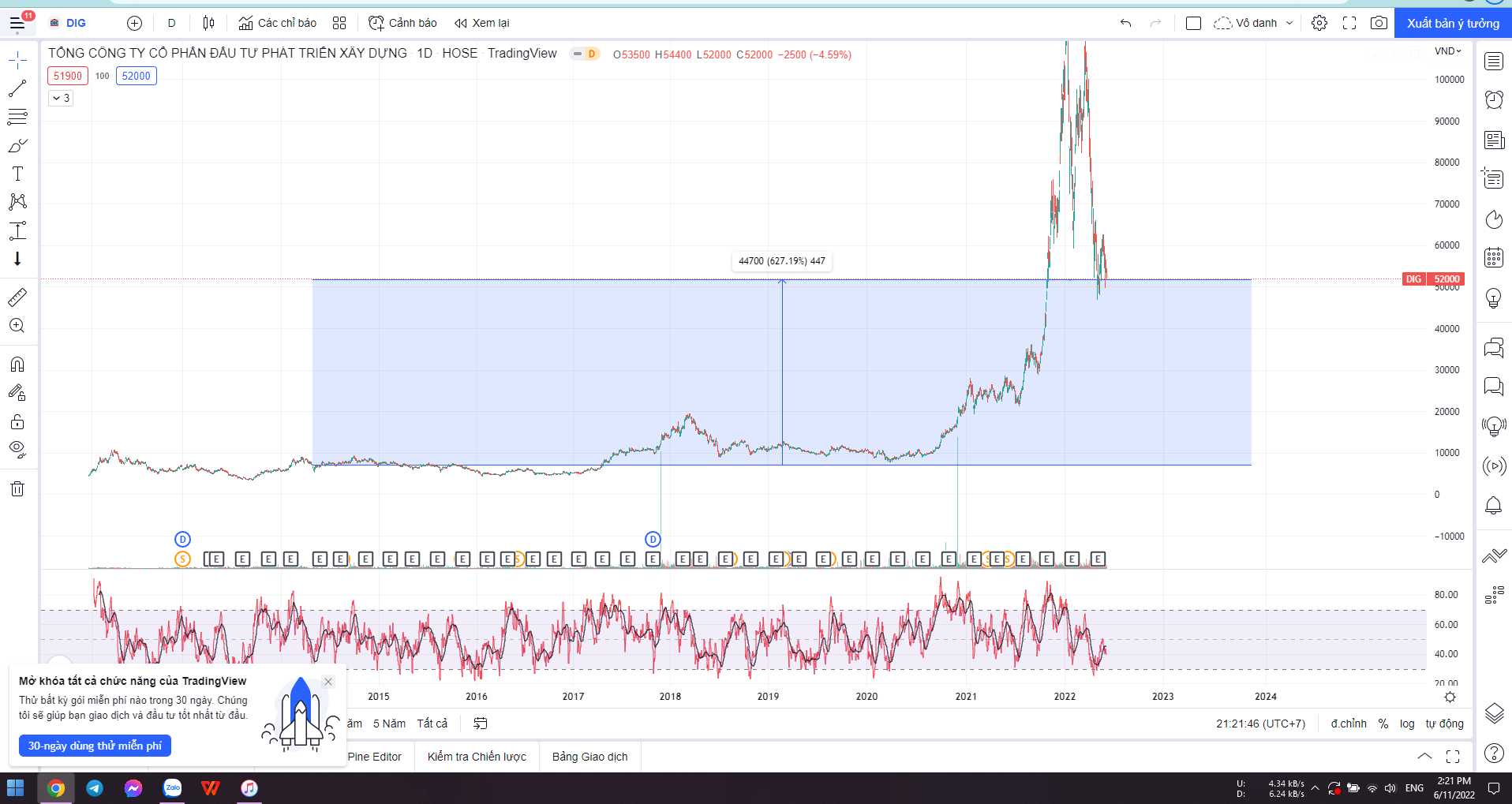 Giá Dig đi ngang lâu lắm bạn í ạ, nó giảm 60% từ đỉnh thì phải tích luỹ lâu lắm