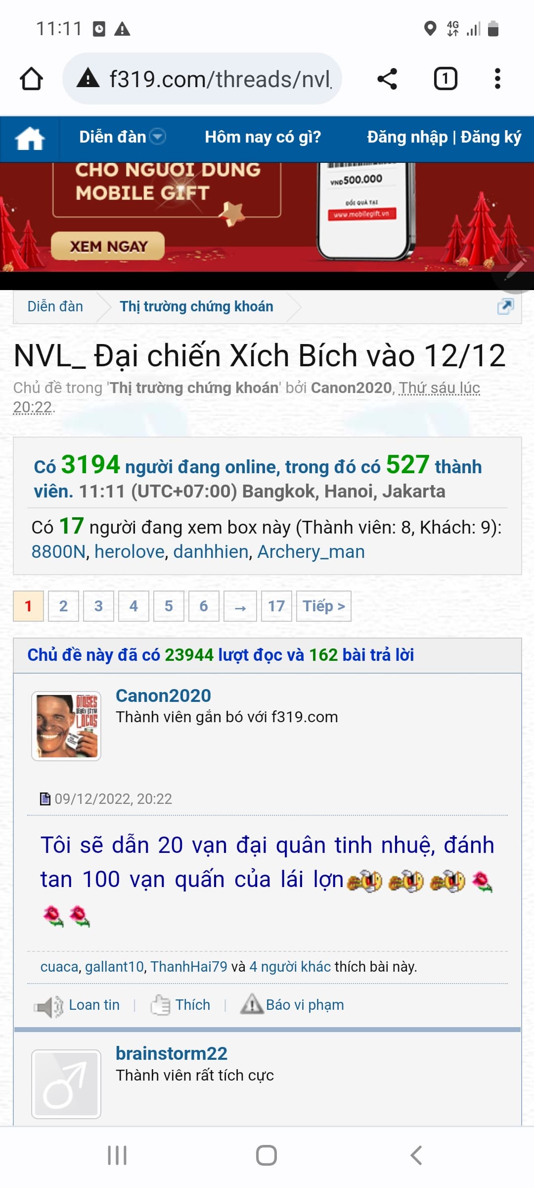 Anh em nào cho rằng NVL ngày mai còn giảm tôi chấp độ 1 ăn 5 nhé. Nếu cho rằng mai NVL sàn và chơi sẽ nhờ mod hoặc admin đứng ra trung gian giúp, chuyển tiền vào tk của admin