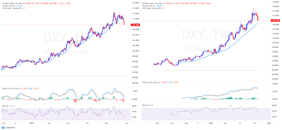 Ở hình trên bạn đang thấy được giá chỉ số DXY hôm nay đang ở mức 109.78. Nghĩa là so với mức tiêu chuẩn 100 thì USD Index đã tăng 9.78%