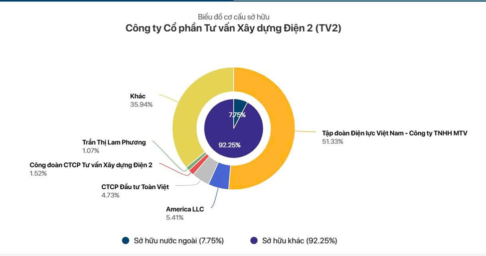 - Tỷ lệ sở hữu nước ngoài tại TV2 hiện khoảng 7,75%, trong khi 92,25% cổ phần thuộc về nhà đầu tư trong nước.