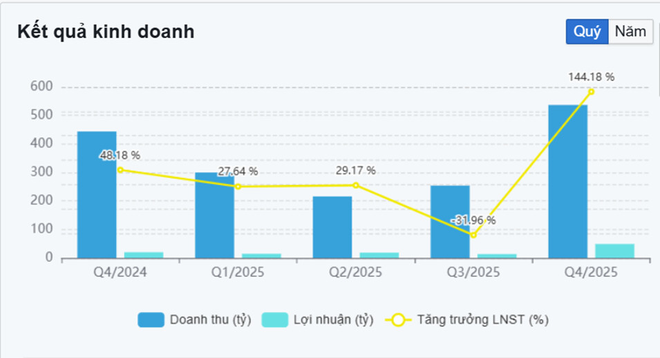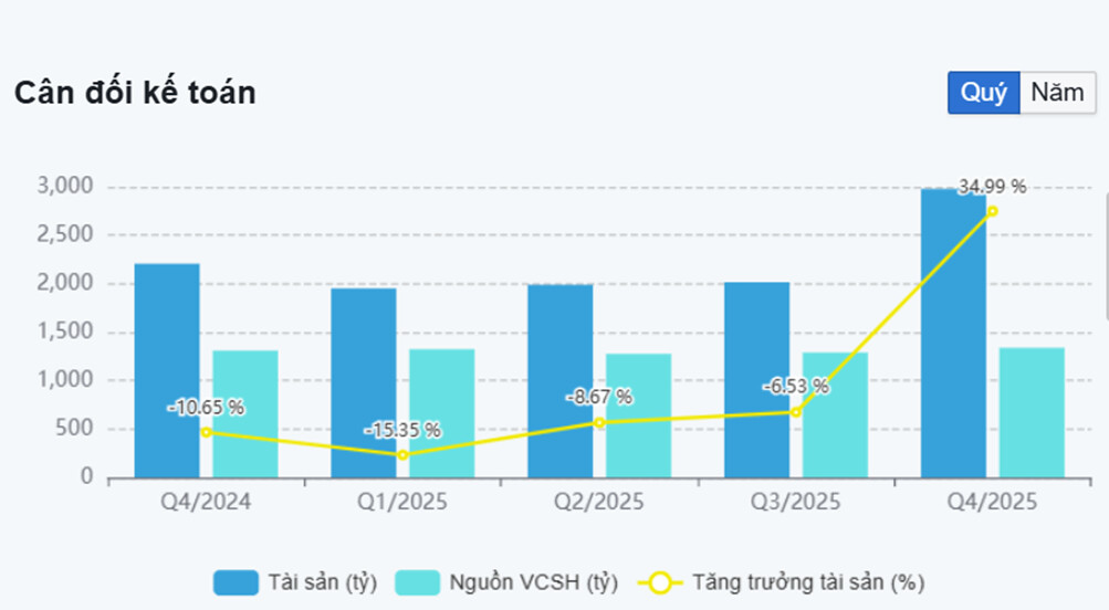 Điểm tích cực là tài sản tăng trưởng không đi kèm với việc gia tăng vay nợ quá mạnh, cho thấy doanh nghiệp vẫn duy trì mức đòn bẩy tài chính tương đối an toàn
