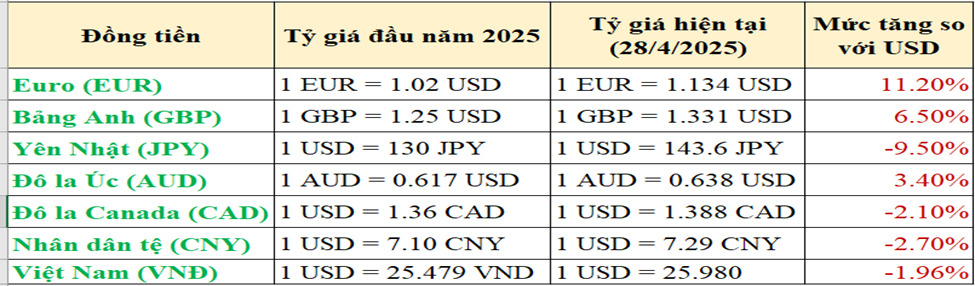 Tỷ giá ngày 28/4/2025 là 25,980 tăng 1,96%