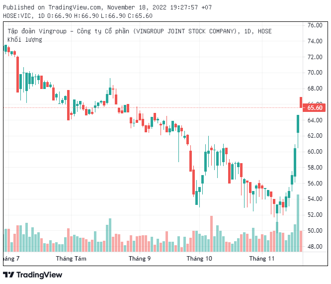Đóng cửa phiên giao dịch ngày 18/11, giá cổ phiếu VIC dừng ở mức 65.600 đồng/cp, như vậy số cổ phiếu ông Vượng chuyển nhượng cho VMI JSC có giá trị là 15.971 tỷ đồng.