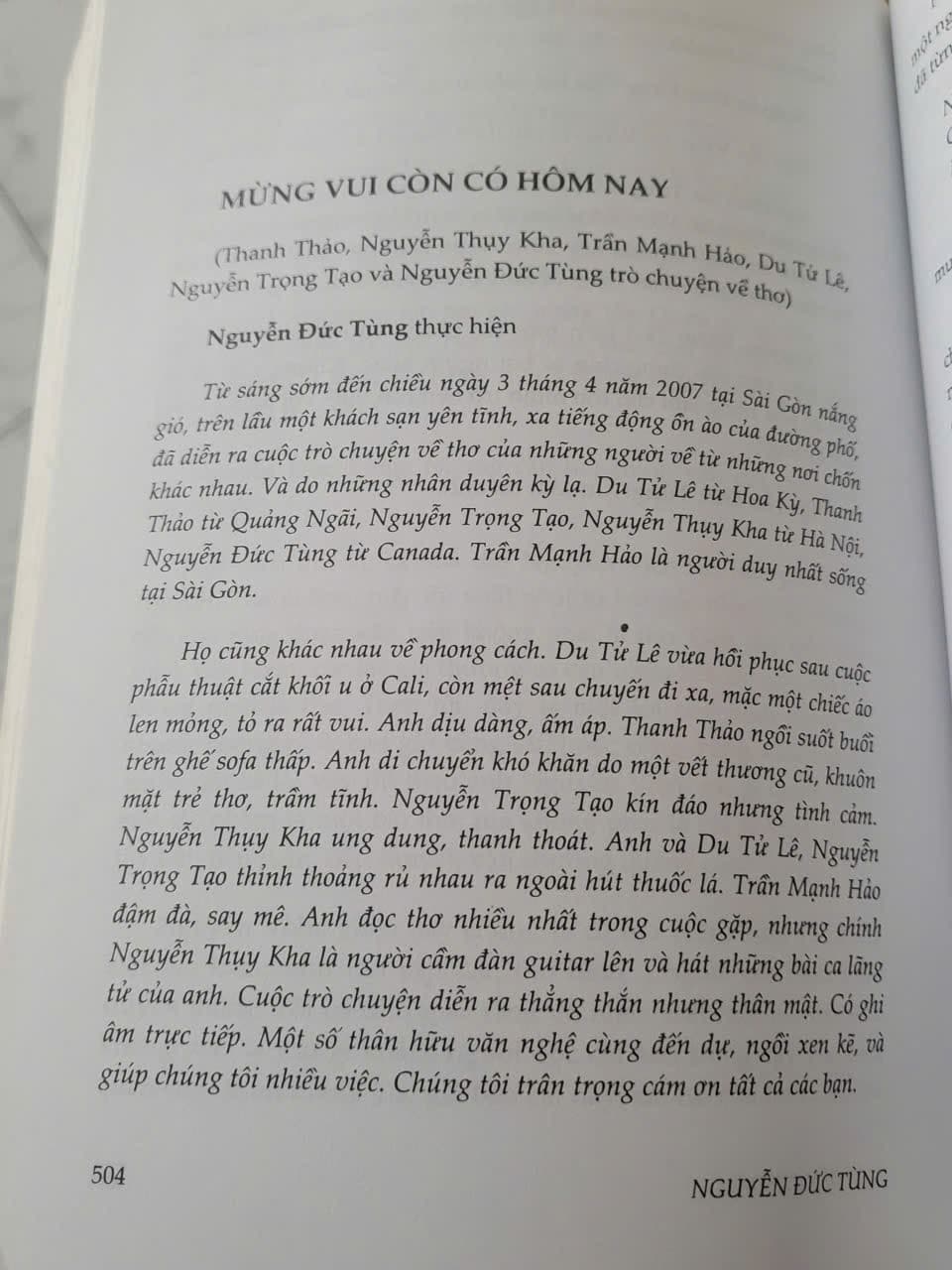 P.s : mốc time 3/4/2007. Sách in/bán tháng 9/2009. Bạn văn chương NaK gởi tăng từ Hà Nội. Sáu cái tên đến nay thì ko còn trên đời này 1/2 rồi : Du tử Lê, Nguyễn Trọng Tao và Nguyễn Thuỵ Kha .