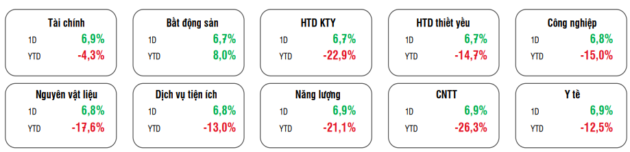 Tính từ đầu năm tới hiện tại thì BĐS đang là nhóm duy nhất ghi nhận tăng trưởng