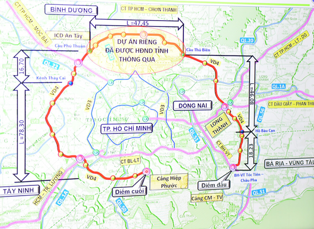 Vành đai 4 Tp.HCM đoạn qua Long An (nay là Tây Ninh) có chiều dài 78,3km. Hiện tại, tỉnh đang tập trung triển khai công tác khảo sát địa hình, địa chất; cắm cọc giải phóng mặt bằng và lập quy hoạch các khu tái định cư.
