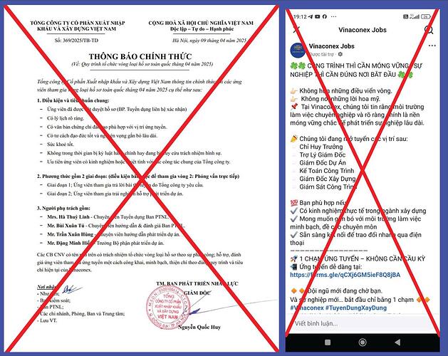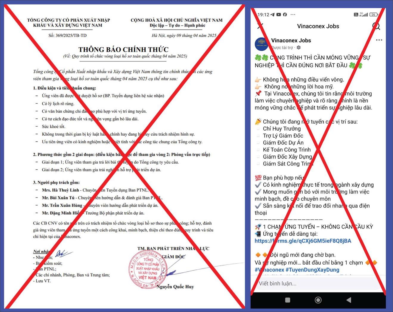 Theo đó, VINACONEX cho biết, thời gian gần đây, các đối tượng xấu tiếp tục giả mạo thương hiệu VINACONEX hoặc nhân viên VINACONEX để thực hiện các hành vi lừa đảo chiếm đoạt tài sản. Dù VINACONEX đã phát đi nhiều cảnh báo, các chiêu trò này vẫn tái diễn ngày càng tinh vi hơn, trắng trợn hơn.