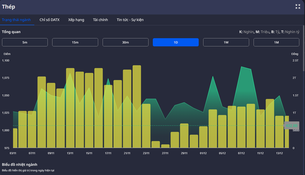 Để xem biểu đồ chỉ số DATX của ngành và mã cổ phiếu, nhà đầu tư vào trong phần Xếp hạng, sau đó lọc trong phần bộ lọc, chọn mã ngành, và mã cổ phiếu mình quan tâm.