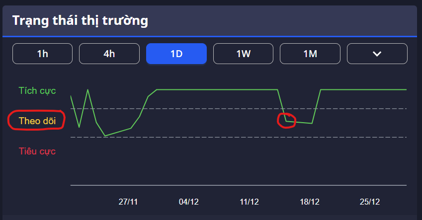 Thời điểm đường Trạng thái thị trường trên khung 1W cắt lên vùng tích cực báo hiệu tín hiệu rất tích cực