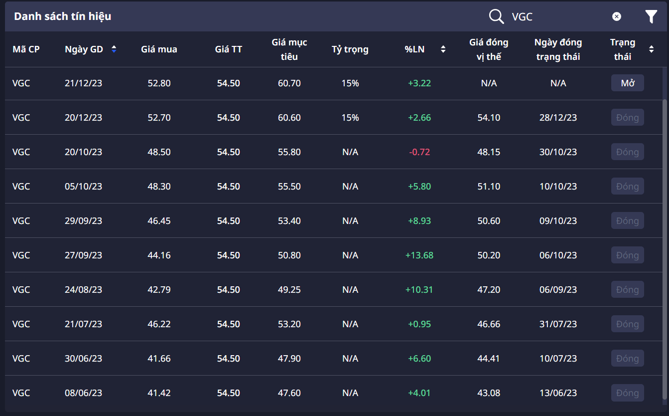 Mã cổ phiếu VGC là một mã cổ phiếu tiêu biểu với hiệu suất cao