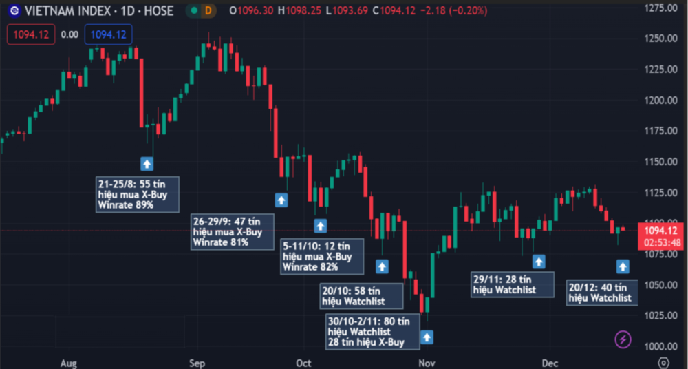 Các thời điểm VNINDEX ở vùng đáy thường xuất hiện nhiều tín hiệu X-Watchlist