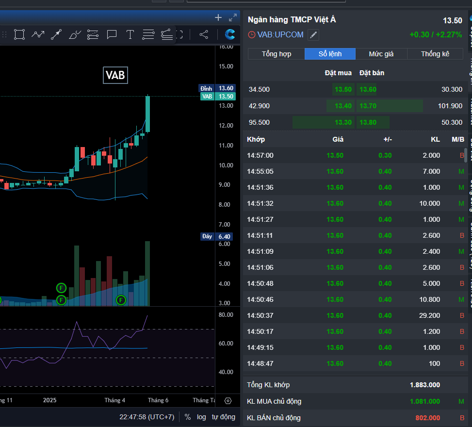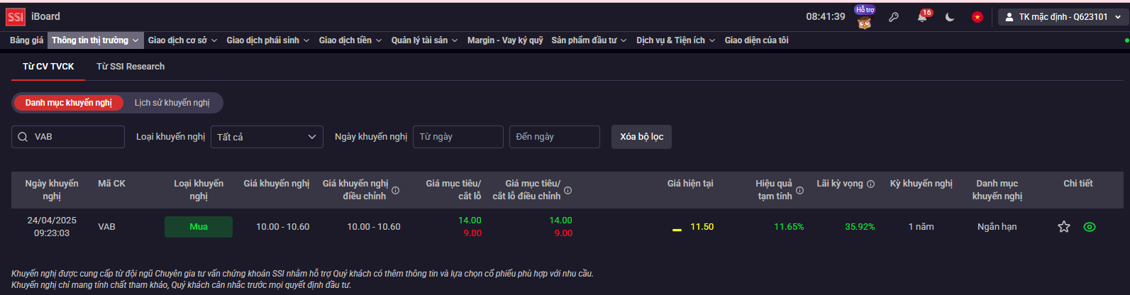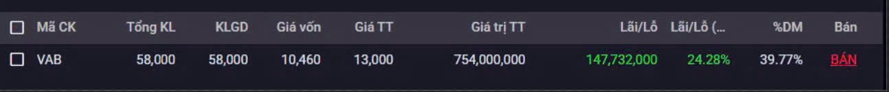 VAB lãi gần 40% từ điểm mua khuyến nghị của team