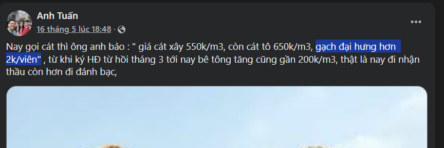 Ông Nguyễn Quốc Hiệp, Chủ tịch Hiệp hội các nhà thầu Xây dựng Việt Nam cho biết, giá VLXD hiện nay đang là vấn đề lớn của ngành xây dựng và các nhà thầu. Bởi, có những vật liệu tăng đến 40% giá trị, như cát xây dựng, gạch đỏ… Không những thế mà còn khan hiếm.
