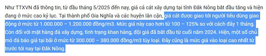Giá cát xây dựng đang tăng đột biến và khan hiếm nguồn cung.