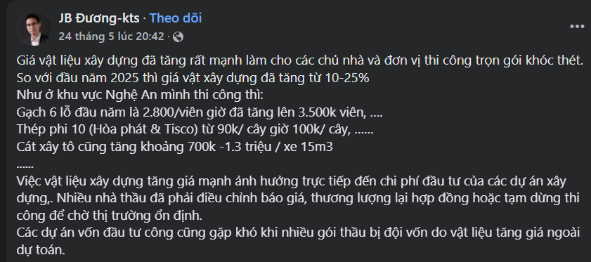 Giá VLXD tăng mạnh, nên các nhà thầu đang trong tình thế tiến thoái lưỡng nan.