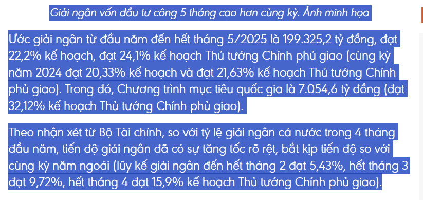 Giải ngân đầu tư công tháng 5 đã bứt tốc rất mạnh và với tình hình như hiện tại thì các tháng tiếp theo nếu điều kiện thời tiết thuận lợi thì các con số còn ấn tượng hơn nhiều!