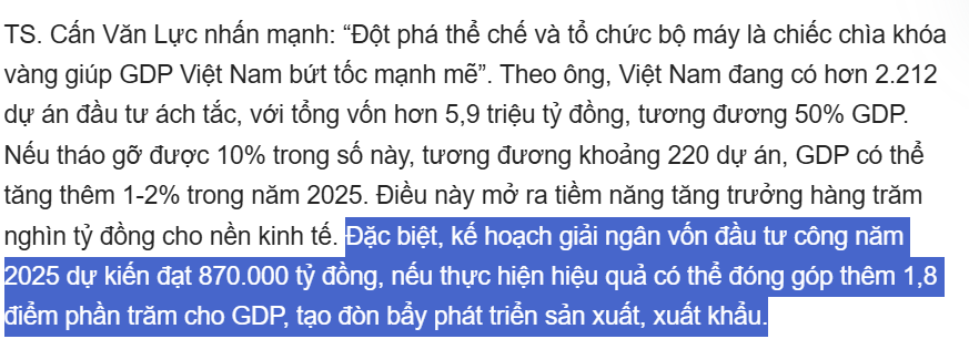 PMI tháng 5 tiếp tục dưới 50 cho thấy sản xuất vẫn bị thu hẹp và chịu tác động lớn từ câu chuyện thuế quan. Chính vì lý do đó thì đầu tư công vẫn được coi là trụ cột quan trọng để tăng trưởng kinh tế và tiếp tục phát huy vốn mồi để kéo GDP tăng tốc!