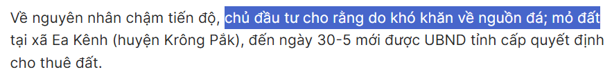 Các dự án lớn hiện tại khó khăn về thiếu vật liệu đặc biệt là Đá vẫn rất nóng!