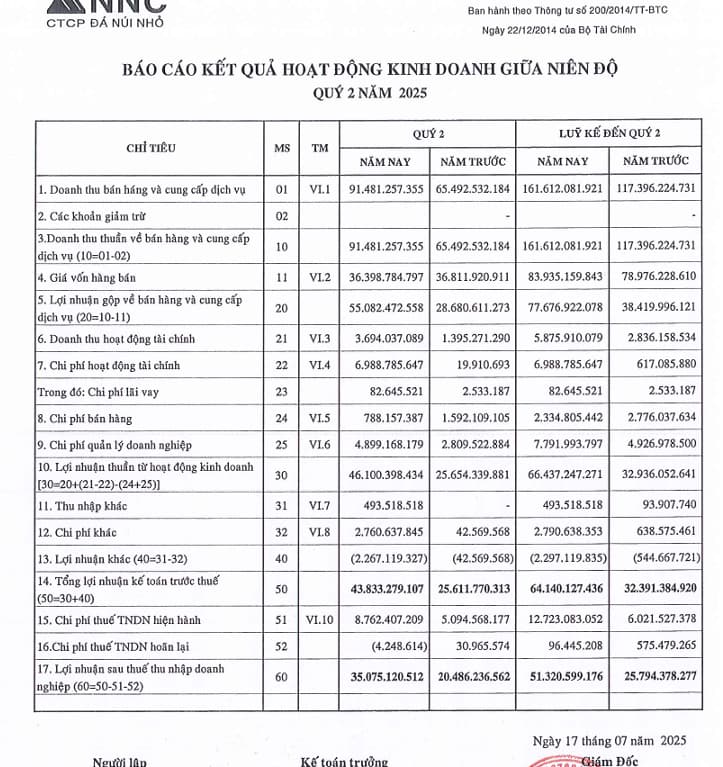 NNC cũng vừa ra BCTC quý 2-2025 cao nhất kể từ quý 1-2021. Cho thấy ngành đá bắt đầu bùng nổ lợi nhuận như view
