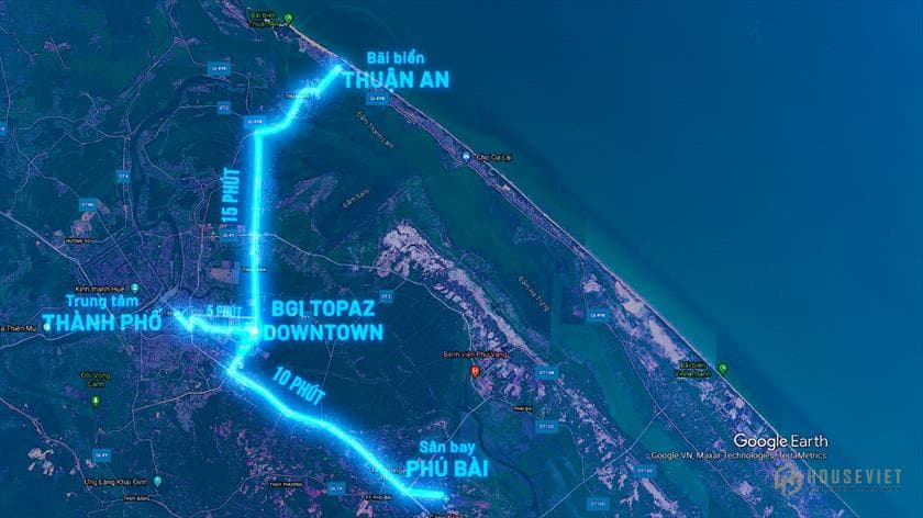 Nằm tại tâm điểm trong hướng phát triển và mở rộng của TP. Huế – khu A của khu đô thị mới An Vân Dương năng động, dự án BGI Topaz Downtown được bao quanh bởi 4 tuyến quốc lộ lớn là những trục đường giao thông huyết mạch của TP. Huế. Cận kề dự án là các trung tâm hành chính mới của tỉnh như Tòa án nhân dân tỉnh, Ban Chỉ huy Quân sự tỉnh, một phần trụ sở Tỉnh ủy Thừa Thiên Huế, công viên thành phố…