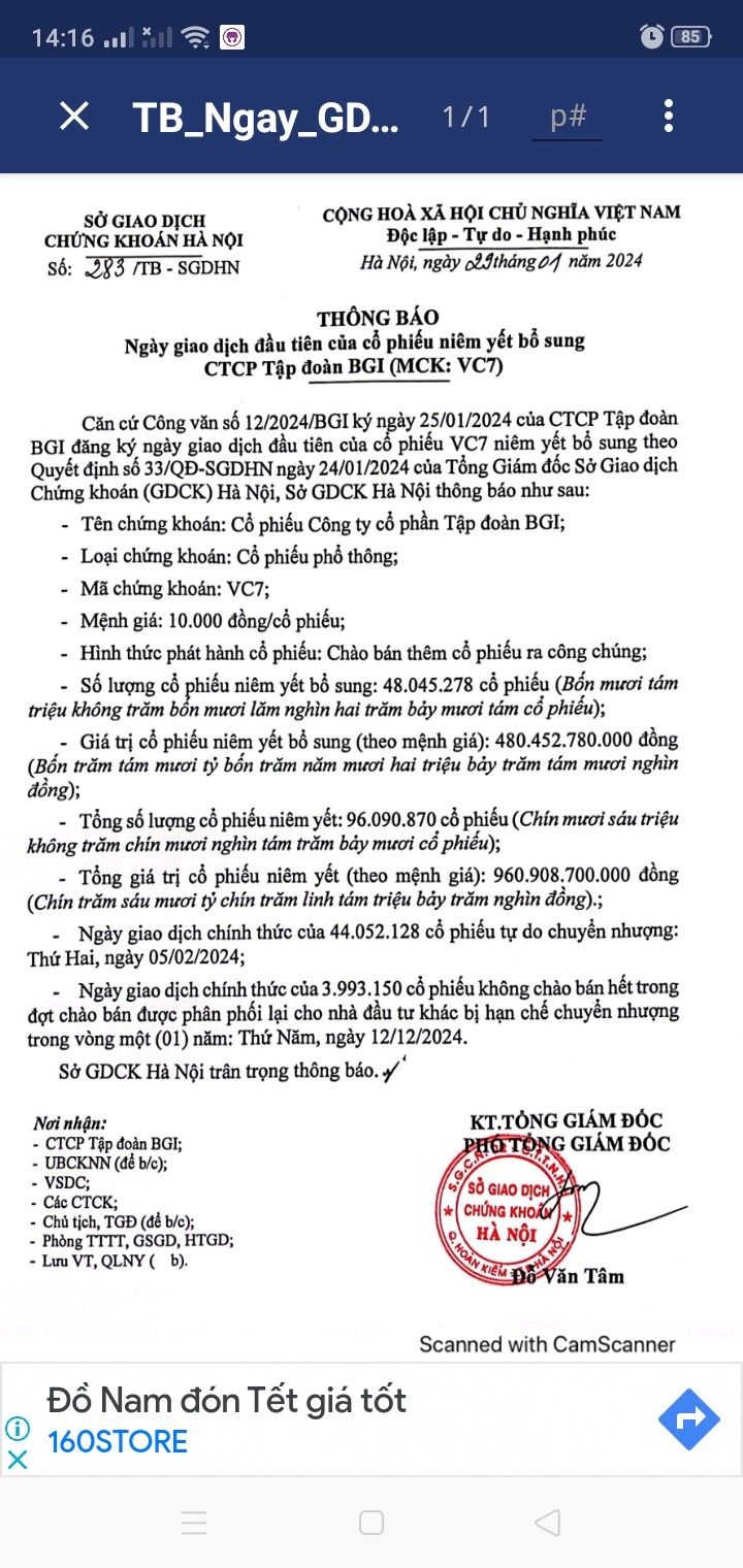 Chắc hôm nay ra TB chốt ngày giao dịch CP phát hành thêm